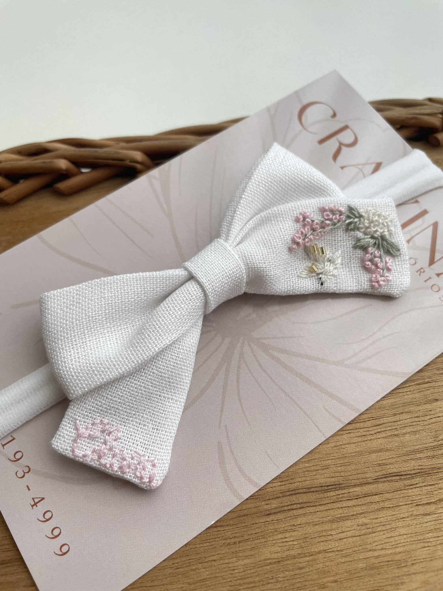 ***Especificamente nesse laço, devido a pequena área disponível para o bordado, o nome deverá conter no máximo até 6 letras.