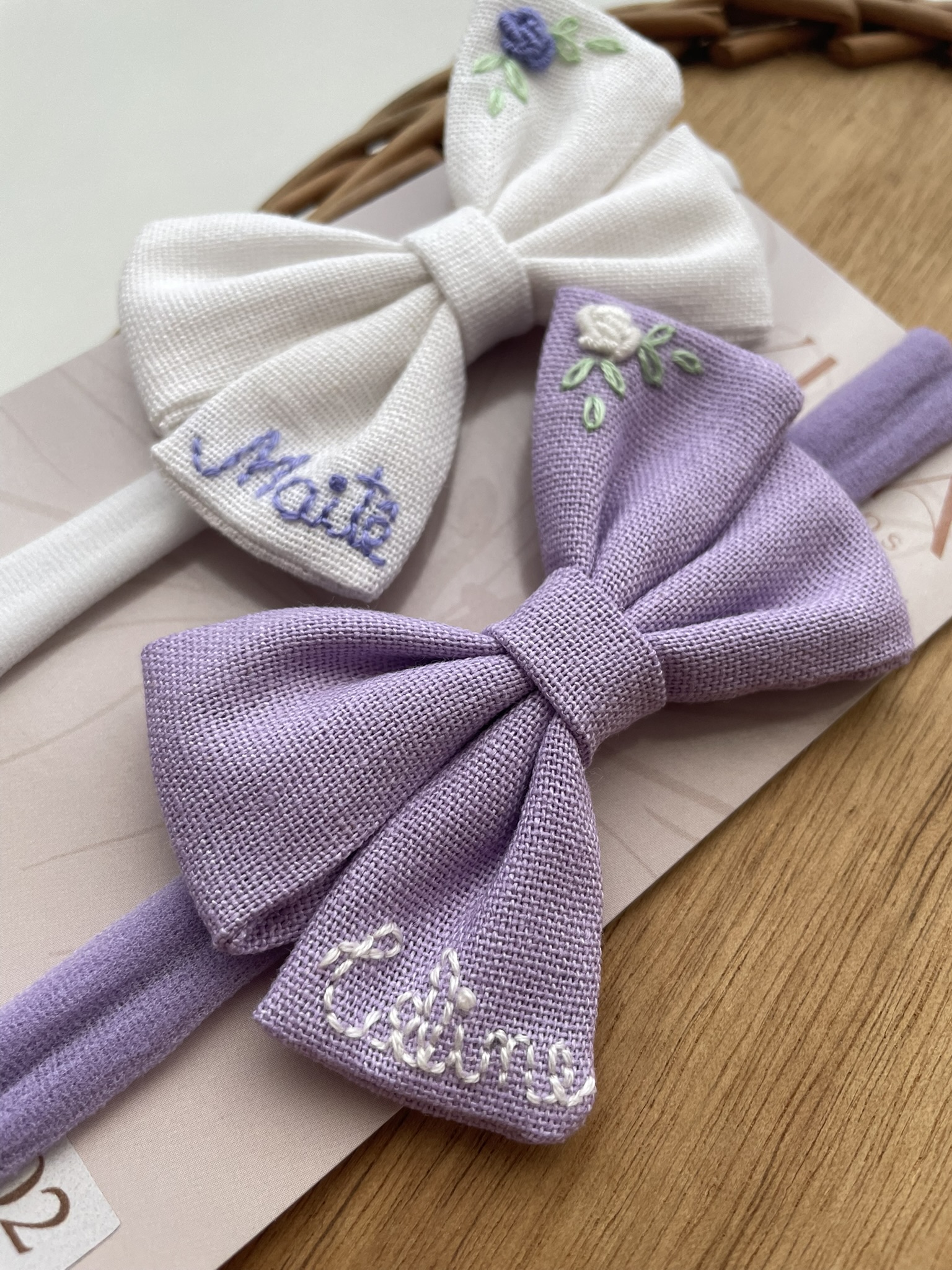 Laço de linho, bordado a mão.