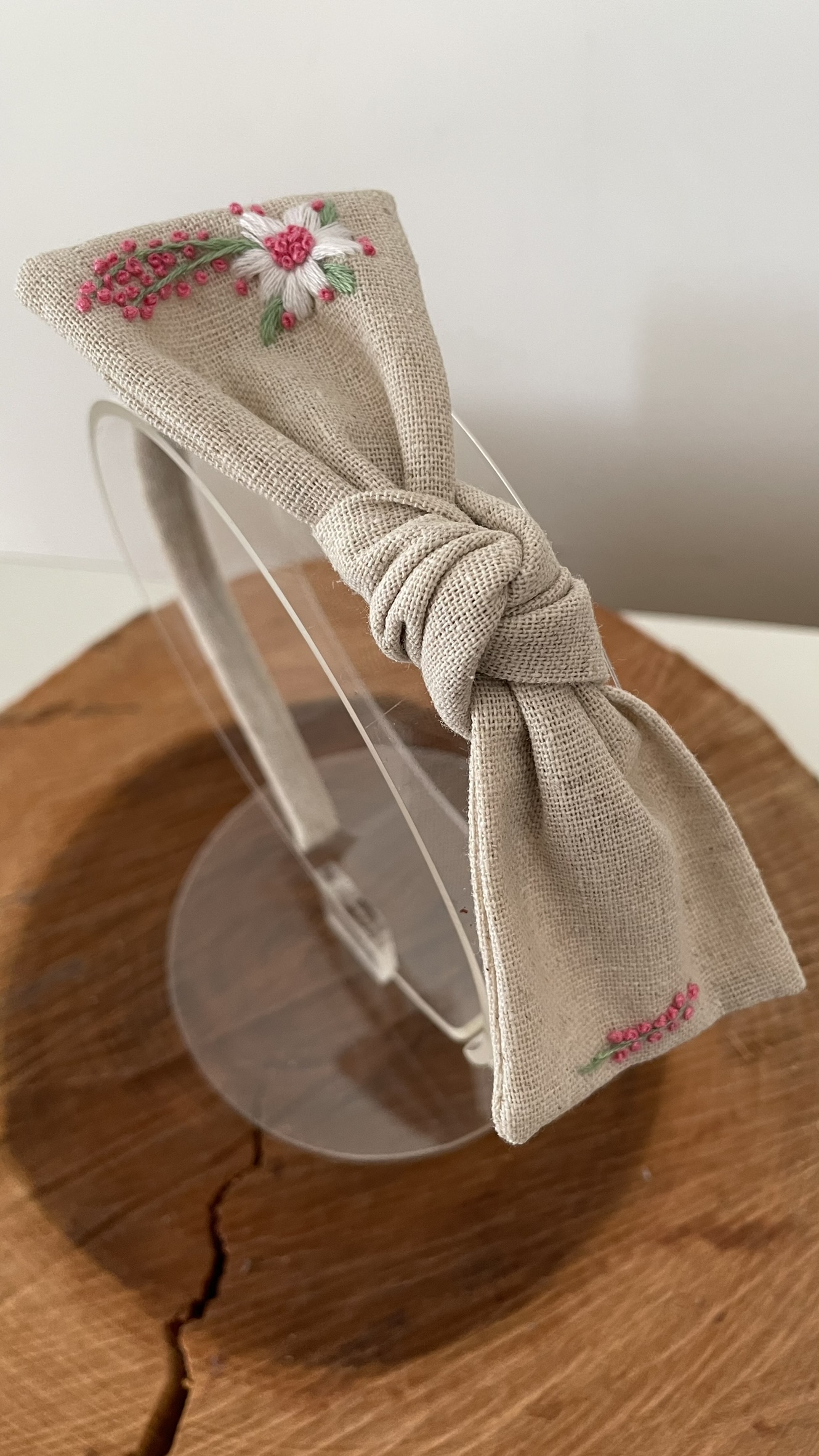Tecido de linho, bordado a mão.